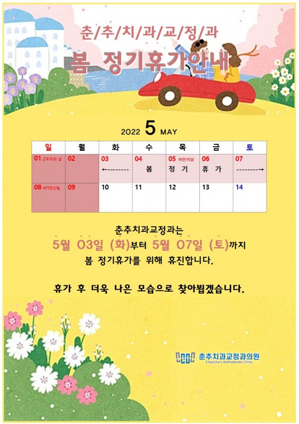 춘추치과는 봄정기휴가기간을 갖습니다.