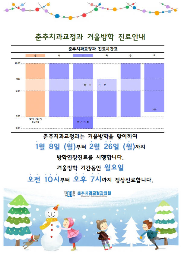 춘추치과교정과는 2024년 1월 8일부터 겨울방학진료로